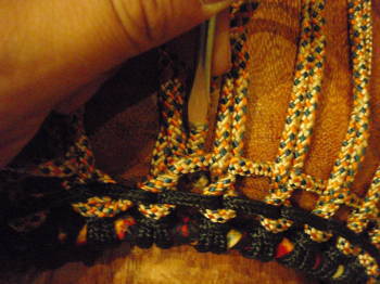次の(右隣)の2本のロープの下に横ロープをくぐらせます。